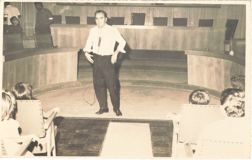 | dc.description.abstractx | Retrata a oitava fotografia de uma minicoleção composta pelas imagens 0225 a 0234 relacionadas à Operação Azul e Branco que relata o trabalho extensionista da UFRPE em colaboração com o Exército Brasileiro. Como não possui uma data especificada adotamos o ano de 1971 como a data em que foi registrada. A Operação Azul e Branco foi uma ação do Exército Brasileiro, realizada em parceria com as Universidades. A UFRPE logo se agregou através da Coordenação de Atividades de Extensão – COATE, criada em 1971, a célula mater da Pró-Reitoria de Extensão da UFRPE e participou de várias ações. Essa ação permitiu que a Universidade agregada ao Exército Brasileiro se movimentasse levando professores, alunos e técnicos para os municípios do interior, ali permanecendo durante uma semana para ministrar cursos, palestras, eventos e dar assistência técnica àquelas comunidades. Foi um trabalho de extensão que oportunizou à Universidade romper a fronteira do campus para encontrar o homem do campo. Esse é o registro de uma atividade no salão nobre da UFRPE, uma palestra. O palestrante não foi identificado. Vê-se alguns participantes, possivelmente crianças, sentadas de frente para o palestrante que está de pé diante do microfone. No lado esquerdo da fotografia, na parte de cima, vê-se 03 homens, um sentado conversando com outro que está de pé e há ainda um terceiro que aparece de costas usando camisa branca. Durante a entrevista para rememoração, ao observar a fotografia, o reitor Adierson falou: “Não lembro quem era esse palestrante... Vejo a bancada do salão nobre... Durante meu reitorado as portas da Universidade estavam abertas para a comunidade... Tanto a Universidade ia para a comunidade como a comunidade vinha para a Universidade. A palavra é Integração! Essa era a palavra que eu usava”. FONTES DE PESQUISA: Entrevista concedida às bibliotecárias Conceição Martins e Vania Ferreira para atender aos objetivos do Repositório Institucional, projeto “(Re) Memórias da UFRPE”, para a contextualização das imagens do acervo fotográfico do reitorado do Prof. Dr. Adierson Erasmo de Azevedo, no período de dezembro de 1969 a agosto de 1973. Acervo localizado no Núcleo do Conhecimento Professor João Baptista Oliveira dos Santos, da Biblioteca Central da UFRPE. Entrevista realizada no dia 29 de abril de 2016, no Espaço Santander da Biblioteca Central da UFRPE. Duração de 2h24min com transcrição da bibliotecária Conceição Martins. | |
