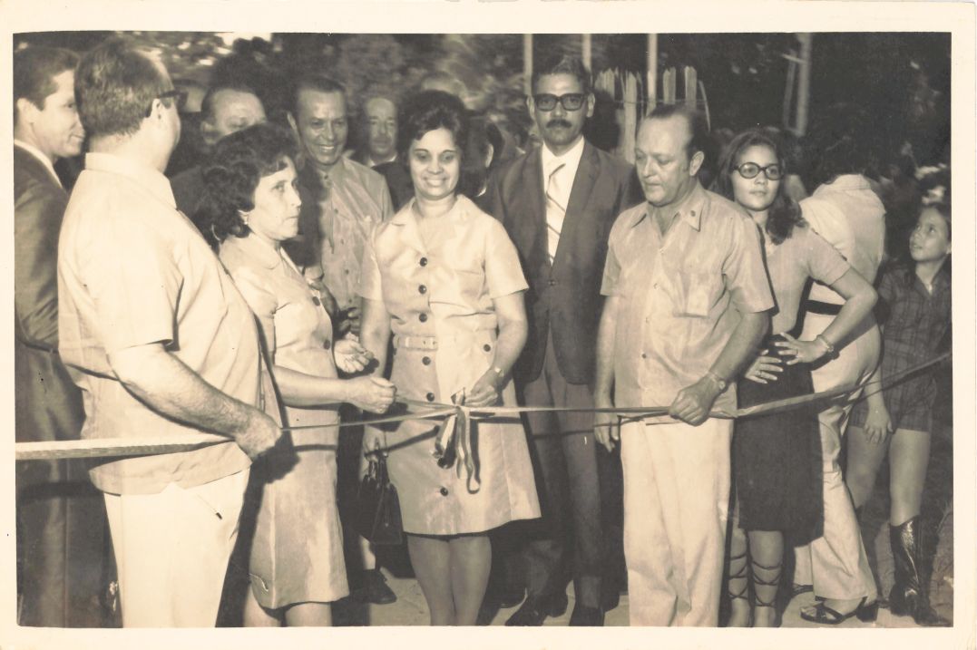 Reproduz a solenidade de inauguração da Escola Lions Recife Parnamirim, construída com recursos angariados pelo Lions Clube Recife Parnamirim Distrito L14, em terreno cedido pela Universidade Federal Rural de Pernambuco, ocorrida no dia 28 de agosto de 1971. Na imagem, vê-se o professor Adierson Erasmo de Azevedo, reitor da UFRPE, o professor Waldecy Fernandes Pinto e, atrás dele, o professor Eudes de Souza Leão Pinto, ambos da UFRPE e também membros do Lions Clube. À frente encontram-se os dirigentes do Lions Clube Recife Parnamirim Distrito L14 no momento do corte da fita da inauguração. Ratificamos que o professor da UFRPE, Waldecy Fernandes Pinto, foi o arquiteto que projetou o prédio da Escola e, posteriormente, no período de 1983 a 1987, esteve reitor da UFRPE. Durante a entrevista para rememoração, ao observar a fotografia, o reitor Adierson falou: “Quando assumi a reitoria, não tinha escolas nas comunidades circunvizinhas da UFRPE e nelas moravam muitos servidores da nossa universidade que tinham filhos em idade escolar, então chamei o professor Waldecy Pinto que era membro do Lions, conversei com ele e com a diretoria do Lions Recife Parnamirim sobre a criação de uma escola. Waldecy fez o projeto do prédio, a Rural cedeu o terreno e o Lions construiu a escola e foi muito bom para os funcionários da Rural que tinham filhos e para todas as crianças das comunidades do entorno da UFRPE. (Observando!)... É, foi muito bom.... Aqui estou eu... aqui atrás vejo Waldecy Pinto, Eudes de Souza Leão Pinto... As outras pessoas não consigo lembrar os nomes... Eita, que coisa linda... é muita gente! Aqui, eu e Dom Hélder Câmara, Arcebispo Emérito de Olinda e Recife, já havíamos discursado, e até uma garotinha tinha lido uma mensagem. Agora era a vez de os dirigentes do Lions cortarem a fita da inauguração e também se pronunciarem. Olhar essas fotografias da inauguração dessa escola me emociona... (Lágrimas nos olhos... Silêncio...) Essa escola foi e continua sendo muito importante para essas comunidades...” FONTES DE PESQUISA: Entrevista concedida às bibliotecárias Conceição Martins e Vania Ferreira para atender aos objetivos do Repositório Institucional, projeto “(Re) Memórias da UFRPE”, para a contextualização das imagens do acervo fotográfico do reitorado do Prof. Dr. Adierson Erasmo de Azevedo, no período de dezembro de 1969 a agosto de 1973. Acervo localizado no Núcleo do Conhecimento Professor João Baptista Oliveira dos Santos, da Biblioteca Central da UFRPE. Entrevista realizada no dia 27 de abril de 2016, no Espaço Santander da Biblioteca Central da UFRPE. Duração de 2h17min com transcrição e pesquisa complementar da bibliotecária Conceição Martins. PESQUISA COMPLEMENTAR: Reinaugurações na Escola Lions Recife Parnamirim. JC Lions News-DLA3-12 anos. Disponível em: https://jcoliveirarec.blogspot.com/2014/06/reinauguracoes-na-escola-lions.html Acesso em: 21 mar. 2022.