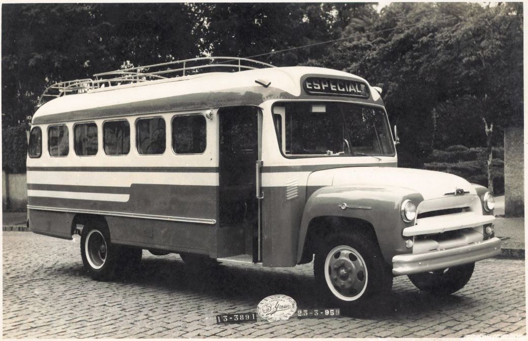 Retrata o ônibus modelo “Sertanejo”, vista externa do ônibus adquirido no reitorado do professor Manuel Rodrigues Filho estacionado no campus da UFRPE. Como não possui uma data especificada adotou-se o ano de 1960 como a data em que foi registrada. O aludido veículo, produzido pela Grassi S.A. – Indústria e Comércio, modelo “Sertanejo” do tipo Intermunicipal, com bagageiros acima do teto e capacidade para 25 passageiros, com chassi Chevrolet 6503, adquirido para o transporte dos estudantes e servidores durante a realização de atividades externas ao campus em Dois Irmãos. Observa-se que a chamada acima do painel onde deve aparecer o destino da viagem, por enquanto está sinalizando “Especial”. FONTE DE PESQUISA: Carimbo da Grassi S.A. contendo Informações datilografadas no verso da fotografia. PESQUISA COMPLEMENTAR: AMARAL, Muriel Emídio Pessoa. Lendo fotografias e produzindo sentido. Discursos Fotográficos, Londrina, v. 9, n. 14, p. 225-228, jan. /jun. 2013. Disponível em: http://dx.doi.org/10.5433/1984-7939.2013v9n14p225. Acesso em: 24 nov. 2023; ARANTES, Antonio Augusto (Org). Produzindo passado: estratégias de construção do patrimônio cultural. São Paulo: Brasiliense, 1984.