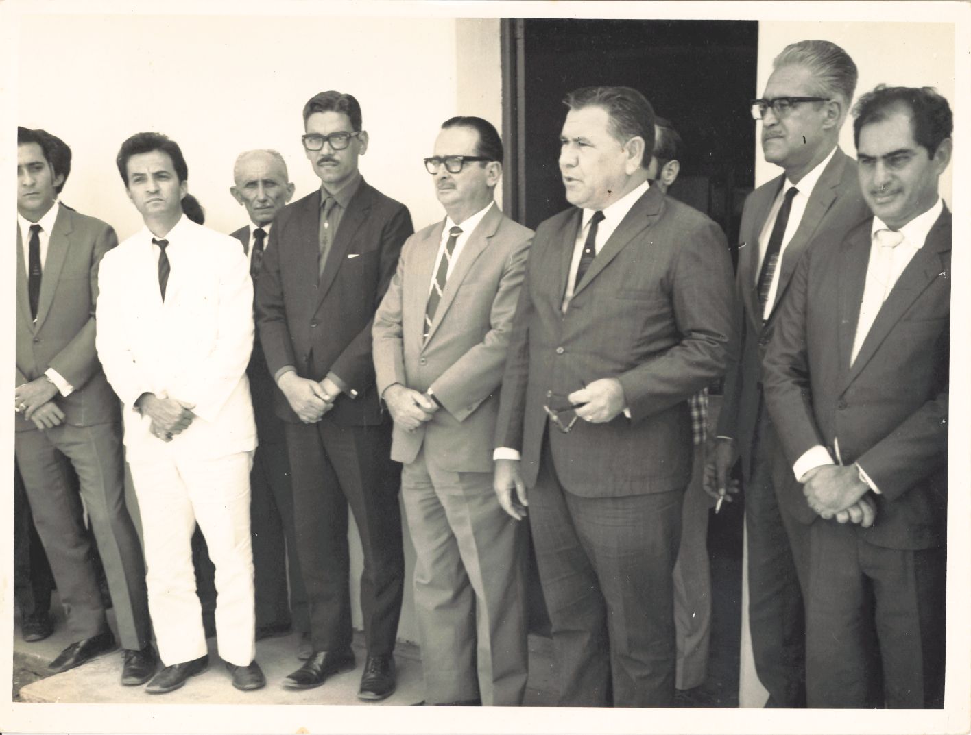 Retrata outro click fotográfico da continuação da solenidade de inauguração do Convênio entre a UFRPE, o Grupo Executivo para a Racionalização da Agroindústria Canavieira do Nordeste – GERAN e o PNMO para ministrar Cursos de Tratoristas e Máquinas Agrícolas. Como essa fotografia não possui uma data especificada, adotamos o ano de 1971 como a data em que foi registrada. Vê-se o professor Adierson Erasmo de Azevedo, reitor da UFRPE tendo ao seu lado direito o coronel Ivan Ruy Cavalcanti, diretor do GERAN, ao seu lado discursando, o professor Izaias Vieira da Silva, diretor do Colégio Agrícola Dom Agostinho Ikas – CODAI, há mais dois senhores não identificados. Do lado esquerdo do reitor Adierson, logo atrás dele, encontra-se o professor Roldão de Siqueira Fontes, docente do CODAI, e o engenheiro agrônomo José Wilson Aranha de Medeiros, integrante do GERAN, entre outras autoridades. Durante a entrevista para rememoração, ao observar a fotografia, o reitor Adierson falou: “Este aqui é Manoel Chaves, chefe do Fomento Agrícola, Isaias; diretor do Colégio Agrícola de Tapera; Ivan Rui; eu ... (Observando)... Roldão Professor do Colégio Agrícola – CODAI em Tapera e se preocupava com a preservação do Pau-brasil, ele estava subutilizado lá no Colégio... Então, não lembro bem o ano, acho que foi em 1972... o convidei para organizar a “Campanha Nacional do Pau-brasil”, dessa forma, a UFRPE apoiou a iniciativa do Prof. Roldão transformando a iniciativa individual numa campanha institucional e nacional... Para dar mais visibilidade a sua campanha de restauração do Pau-Brasil, apoiei a iniciativa do Professor Roldão e o enviei até Brasília coordenando a viagem (Pernambuco-Brasília) de caminhão, levando as primeiras mudas da campanha para distribuição no Distrito Federal... O coronel Ivan Ruy do GERAN, tinha um irmão Coronel do Exército chamado Ivanildo em Brasília, então eu avisei a esse Coronel pelo telefone que a Universidade estava desenvolvendo a “Campanha Nacional do Pau-brasil” e o professor Roldão de Siqueira Fontes estava na coordenação dessa campanha, seguindo um caminhão carregado de mudas de Pau-brasil para distribuir no Distrito Federal... Roldão foi acompanhando o caminhão, ao longo do caminho distribuiu mudas nas escolas e chegando em Brasília encontrou o Coronel e participou com os soldados do exército na distribuição das mudas nas escolas... Foi um trabalho magnífico! Roldão distribuiu cerca de 10 mil mudas por onde passou.... Quando ele voltou, continuamos com a sementeira em Tapacurá e aos poucos fomos enviando mudas para outras cidades de Pernambuco e de outros estados.... Essa foi a 1ª Campanha Nacional do Pau-brasil... O Recife está cheio de Pau-brasil fruto dessa 1ª campanha! ” FONTES DE PESQUISA: Entrevista concedida às bibliotecárias Conceição Martins e Vania Ferreira para atender aos objetivos do Repositório Institucional, projeto “(Re) Memórias da UFRPE”, para a contextualização das imagens do acervo fotográfico do reitorado do Prof. Dr. Adierson Erasmo de Azevedo, no período de dezembro de 1969 a agosto de 1973. Acervo localizado no Núcleo do Conhecimento Professor João Baptista Oliveira dos Santos, da Biblioteca Central da UFRPE. Entrevista realizada no dia 27 de abril de 2016, no Espaço Santander da Biblioteca Central da UFRPE. Duração de 2h17min com transcrição e pesquisa complementar da bibliotecária Conceição Martins. PESQUISA COMPLEMENTAR: OLIVEIRA, Larissa; SANTOS, Luan; RAMOS, Juliana. História da “Campanha do pau-brasil”. Disponível em: http://www.eventosufrpe.com.br/jepex2009/cd/resumos/R0686-1.pdf Acesso em: 1º abr. 2022; SOUZA, O. M. F. de. O que fui e o que sou. Anais da Academia Pernambucana de Ciência Agronômica, Recife, vol. 2, p.63-64, 2005. Disponível em: http://www.journals.ufrpe.br/index.php/apca/article/view/67/63 Acesso em: 1º abr. 2022; ____. “Arruar” a Universidade Rural. Anais da Academia Pernambucana de Ciência Agronômica, Recife, vol. 4, p.19-22, 2007. Disponível em: http://journals.ufrpe.br/index.php/apca/article/download/73/69/0 Acesso em: 1º abr. 2022.