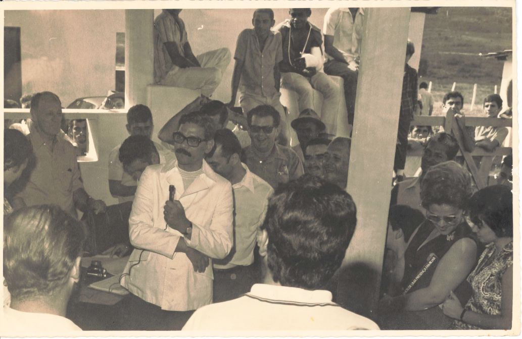 | dc.description.abstractx | Retrata o leilão de gado realizado na Fazenda Agropastoril da UFRPE localizada em São Bento, Tapera, no Município de São Lourenço da Mata, Pernambuco, em 30 de setembro de 1971. Nessa fotografia, vê-se o professor Adierson Erasmo de Azevedo, reitor da UFRPE, em traje esportivo, usando da palavra durante o leilão de gado e estava acompanhado por alguns professores da universidade. Observa-se a presença de muitas pessoas, entre elas, duas mulheres, ambas localizadas no ângulo inferior do lado direito da fotografia. Aquela que traja vestido escuro, possui um broche na gola esquerda, usa óculos, está com 01 livro sob o braço esquerdo cujo título é possível ler parcialmente como “...anos de uma presença familiar”. Vê-se ainda sobre a mesa que aparece ao lado direito do reitor, alguns papéis e uma câmera fotográfica. No ângulo superior direito da fotografia, é possível ver um terreno no qual há uma cerca pintada de branco e um pouco antes uma espécie de porteira aonde se encontram 02 rapazes que observam as demais pessoas, o reitor e seus acompanhantes. O ângulo superior no centro da fotografia há um muro aonde estão sentados 04 homens sendo que o da esquerda no ato do clique não apareceu sua cabeça enquanto que os 02 do centro olham para o que acontece e ouvem a fala do reitor. Um deles, está com o braço engessado e há ainda aquele que se encontra no ângulo direito, cuja cabeça também não fica visível. Durante a entrevista para rememoração, ao observar a fotografia, o reitor Adierson falou: “Esse foi um dos leilões de animais que aconteciam na fazenda, esse me parece que foi um leilão de suínos porque estou acompanhado pelo professor João Baptista Oliveira dos Santos, especialista em suinocultura e diretor do Departamento de Zootecnia. Vamos ver quem está mais aqui... Vejo Alfredo Pinheiro, tesoureiro da UFRPE, Luiz de Melo Amorim, diretor da ESA... E aqui está Geraldo Guerra... Vejo algumas pessoas do público estão sorrindo, inclusive professor João Baptista! Mutio bom!”. FONTES DE PESQUISA: Entrevista concedida às bibliotecárias Conceição Martins e Vania Ferreira para atender aos objetivos do Repositório Institucional, projeto “(Re) Memórias da UFRPE”, para a contextualização das imagens do acervo fotográfico do reitorado do Prof. Dr. Adierson Erasmo de Azevedo, no período de dezembro de 1969 a agosto de 1973. Acervo localizado no Núcleo do Conhecimento Professor João Baptista Oliveira dos Santos, da Biblioteca Central da UFRPE. Entrevista realizada no dia 04 de maio de 2016, no setor de Normalização da Biblioteca Central da UFRPE. Duração de 2h32min22seg, com transcrição e pesquisa complementar da bibliotecária Conceição Martins. | |