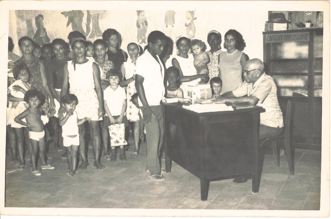 | dc.description.abstractx | Retrata a nona fotografia de uma minicoleção composta pelas imagens 0225 a 0234 relacionadas à Operação Azul e Branco que relata o trabalho extensionista da UFRPE em colaboração com o Exército Brasileiro. Como não possui uma data especificada adotamos o ano de 1971 como a data em que foi registrada. A Operação Azul e Branco foi uma ação do Exército Brasileiro, realizada em parceria com as Universidades. A UFRPE logo se agregou através da Coordenação de Atividades de Extensão – COATE, criada em 1971, a célula mater da Pró-Reitoria de Extensão da UFRPE e participou de várias ações. Essa ação permitiu que a Universidade agregada ao Exército Brasileiro se movimentasse levando professores, alunos e técnicos para os municípios do interior, ali permanecendo durante uma semana para ministrar cursos, palestras, eventos e dar assistência técnica àquelas comunidades. Foi um trabalho de extensão que oportunizou à Universidade romper a fronteira do campus para encontrar o homem do campo. Documenta uma atividade de assistência social em uma comunidade não identificada. Vê-se um grupo de mulheres acompanhadas pelos filhos ainda pequenos, muitos deles de colo, todas aguardando serem atendidas. Vê-se também um birô diante do qual há um jovem de pé passando suas informações ao homem que aparece sentado no mencionado birô tomando anotações. Atrás dele aparece um armário contendo documentos no qual aparece a placa Carteira Profissional. Sobre esse armário há uma pilha de livros e sobre ela um chapéu e mia alguns objetos não identificados. Observa-se que todas as 07 crianças que estão de pé ao lado das mães olham diretamente para o fotógrafo. Do mesmo modo, algumas mães também seguem esse mesmo olhar. Olhando-se com mais atenção, no lado esquerdo da fotografia há uma menina usando um vestido branco segurando um bebê no colo, essa criança não olha para a objetiva. Durante a entrevista para rememoração, ao observar a fotografia, o reitor Adierson falou: “Tem bebezinho, criancinhas e tudo, a família veio à Universidade. Não encontrou barreiras, encontrou estímulos não é filhas?”. FONTES DE PESQUISA: Entrevista concedida às bibliotecárias Conceição Martins e Vania Ferreira para atender aos objetivos do Repositório Institucional, projeto “(Re) Memórias da UFRPE”, para a contextualização das imagens do acervo fotográfico do reitorado do Prof. Dr. Adierson Erasmo de Azevedo, no período de dezembro de 1969 a agosto de 1973. Acervo localizado no Núcleo do Conhecimento Professor João Baptista Oliveira dos Santos, da Biblioteca Central da UFRPE. Entrevista realizada no dia 29 de abril de 2016, no Espaço Santander da Biblioteca Central da UFRPE. Duração de 2h24min com transcrição da bibliotecária Conceição Martins. | |