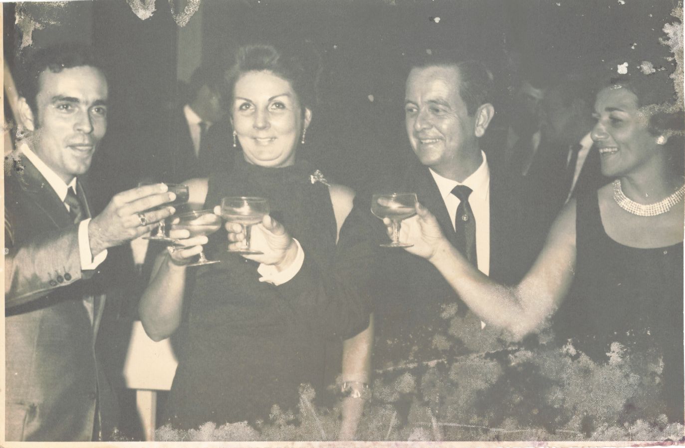 Flash do Baile de formatura da turma de Engenheiros Agrônomos de 1969, realizado no Clube Internacional do Recife, vendo-se o professor José Henrique Pinto da Carvalheira ao da sua esposa Rizoleta Pinto da Carvalheria, brindando ao lado de um jovem casal não identificado. Durante a entrevista para rememoração, o reitor Adierson falou: “Lembro que esse baile foi muito bonito... (pensativo!)... Esse foi o primeiro baile de formatura do meu reitorado.” A “Plaquete dos 80 Anos dos Cursos das Ciências Agrárias” relaciona os nomes dos alunos dessa turma: Alfredo Oliveira da Costa Soares, Amílcar de Oliveira Bezerra, Antonio Maria Gomes de Castro, Augusto César de Oliveira, Auryno Rodrigues Brasil, Bayron Rubem Marinho Coelho, Carlos Alberto Borba Schuller, Carlos Alberto Martorelli, Carlos Batista Dertli, Carlos Frederico Tenório de Siqueira, Carlos Roberto Soares de Melo, Celso Franca Ribeiro dos Anjos, Denilson Costa Amorim, Edson Calado Porto, Edson de Abreu Quintela, Edson de Melo Castanha, Eleutério Pereira de Almeida, Eraldo de Abreu Quintela, Fabiano Antônio Marques Guedes da Paz, Fernando Jansen de Almeida Castanha, Fernando Rodrigues dos Santos, Francisco Ribeiro Beltrão, Gabriel Silveira Arruda, George Almério Alves, Geraldo Aguiar Leite, Geraldo Porfírio Pessoa, João Gomes de Moura, João Isaac de Miranda Rocha, João Monteiro Malheiros Júnior, João Pires da Rocha Filho, João Vilmar de Azevedo, José Anselmo Goes, José Célio Araújo, José Edvalson da Silva, José Ferreira de Lima, José Francisco Ramos, José Gaspar Victor da Silva, José Marcelo Luna Martorelli, José Marcolino Edilmar, José Ranulfo da Costa Queiroz Neto, José Soares da Silva Neto, Josué Rodrigues de Moraes, Ladjane Connoly, Lee Roy Llewely Gillesoie Mcfarland, Lourival José de Freitas, Luiz Gonzaga Primo, Manoel Olímpio de Vasconcelos Neto, Marcelo de Almeida Menezes, Márcio Bartolomeu Alves Filho, Marcondes Maurício de Albuquerque, Marconi Flavio de Queiroz, Marcos Aurélio Cavalcanti dos Santos, Marcônio Alexandre Japiassu, Marlene Félix da Silva, Maurício de Azevedo Gomes, Nilton Correia de Azevedo, Pedro Rodolfo Filho, Petrúcio de Lemos Antunes, Raimundo Nonato Siqueira, Raimundo Jerônimo Pereira Rêgo, Rildo Sartori Barbosa Coêlho e Rivaldo Alves Rodrigues. FONTES DE PESQUISA: Entrevista concedida às bibliotecárias Conceição Martins e Vania Ferreira para atender aos objetivos do Repositório Institucional, projeto “(Re) Memórias da UFRPE”, para a contextualização das imagens do acervo fotográfico do reitorado do Prof. Dr. Adierson Erasmo de Azevedo, no período de dezembro de 1969 a agosto de 1973. Acervo localizado no Núcleo do Conhecimento Professor João Baptista Oliveira dos Santos, da Biblioteca Central da UFRPE. Entrevista realizada no dia 15 de abril de 2016, no Espaço Santander da Biblioteca Central da UFRPE. Duração de 2h17min com transcrição e pesquisa complementar da bibliotecária Conceição Martins. AZEVEDO, Adierson Erasmo de. A “Caminhada seguindo o Sol” da Universidade Federal Rural de Pernambuco. Recife: Editora UFRPE, 2007. PESQUISA COMPLEMENTAR: Universidade Federal Rural de Pernambuco. Plaquete 80 anos dos cursos de ciências agrárias: UFRPE 1912-1992. p. 59-60.