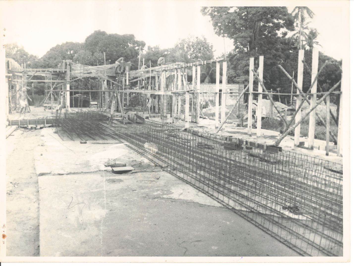 Registra a construção do prédio Professor Otávio Gomes no campus da UFRPE, em Dois Irmãos, destinado ao Departamento de Agronomia no ano de 1969. Vê-o alicerce da construção, várias colunas, ferragens e trabalhadores da construção civil em diversas atividades. Observa-se a existência de árvores após a construção. Durante a entrevista para rememoração, ao observar a fotografia, o reitor Adierson falou: “São muitas fotos! Uma maravilha!.... Otavio Gomes foi um antigo professor da Rural, por isso coloquei o nome dele no prédio como homenagem a esse antigo professor. Em 1969, meu primeiro ano de reitorado, investi em construção porque não tinha mais espaço para as ampliações e para os novos cursos que estávamos planejando e era preciso ampliar nossa prediagem. ” FONTES DE PESQUISA: Entrevista concedida às bibliotecárias Conceição Martins e Vania Ferreira para atender aos objetivos do Repositório Institucional, projeto “(Re) Memórias da UFRPE”, para a contextualização das imagens do acervo fotográfico do reitorado do Prof. Dr. Adierson Erasmo de Azevedo, no período de dezembro de 1969 a agosto de 1973. Acervo localizado no Núcleo do Conhecimento Professor João Baptista Oliveira dos Santos, da Biblioteca Central da UFRPE. Entrevista realizada no dia 29 de abril de 2016, no Espaço Santander da Biblioteca Central da UFRPE. Duração de 2h24min com transcrição e pesquisa complementar da bibliotecária Conceição Martins. PESQUISA COMPLEMENTAR: realizada pela Bibliotecária Conceição Martins: O prédio Professor Otávio Gomes, comumente chamado de prédio da Agronomia, localiza-se defronte à Praça do Jardim Zoobotânico, em Dois Irmãos, logo no início do campus da UFRPE em Recife. Agrega em seu espaço físico, entre outros, o Programa de Pós-Graduação em Fitossanidade, o Programa de Pós-Graduação em Botânica, o Programa de Pós-Graduação em Melhoramento Genético de Plantas, o Programa de Pós-Graduação em Ciência do Solo, o Programa de Pós-Graduação em Entomologia.