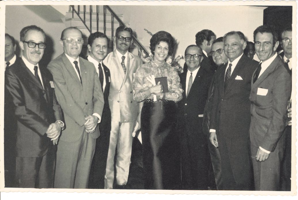 Esta fotografia registra um dos momentos da Reunião do Conselho de Reitores das Universidades Brasileiras (CRUB), infelizmente, não informa o ano nem o local. Em seu verso aparecem discriminados 09 reitores e durante entrevista para a rememoração, o reitor Adierson Erasmo de Azevedo, ao observar a fotografia e ler as informações do verso, falou: “Ainda bem que escreveram no verso, aqui tem 9 autoridades e não consigo lembrar os nomes de todas elas.” Na anotação escrita à lápis grafite no verso, aparecem discriminados os nomes de 09 professores: Professor Ferreira Lima, reitor da UFSC; Dr. Pedro Calheiros Bonfim, representante do Ministro do Planejamento; Professor Fernando Ramos, Decano do Centro de Artes da UFSM; Professor Adierson Erasmo de Azevedo, reitor da UFRPE; Professora Maria Cleonice Sada Aita, Faculdade de Filosofia da UFSM; Professor Aristóteles Simões, reitor da UFAL; Professor Hélio Bernardi, Vice-reitor da UFSM; Professor Onofre Lopes, reitor da UFRN e Professor Schiappo, Vice-reitor da Universidade do Peru. FONTES DE PESQUISA: Entrevista concedida às bibliotecárias Conceição Martins e Vania Ferreira para atender aos objetivos do Repositório Institucional, projeto “(Re) Memórias da UFRPE”, para a contextualização das imagens do acervo fotográfico do reitorado do Prof. Dr. Adierson Erasmo de Azevedo, no período de dezembro de 1969 a agosto de 1973. Acervo localizado no Núcleo do Conhecimento Professor João Baptista Oliveira dos Santos, da Biblioteca Central da UFRPE. Entrevista realizada no dia 15 de abril de 2016, no Espaço Santander da Biblioteca Central da UFRPE. Duração de 2h17min com transcrição e pesquisa complementar da bibliotecária Conceição Martins. AZEVEDO, Adierson Erasmo de. A “Caminhada seguindo o Sol” da Universidade Federal Rural de Pernambuco. Recife: Editora UFRPE, 2007.