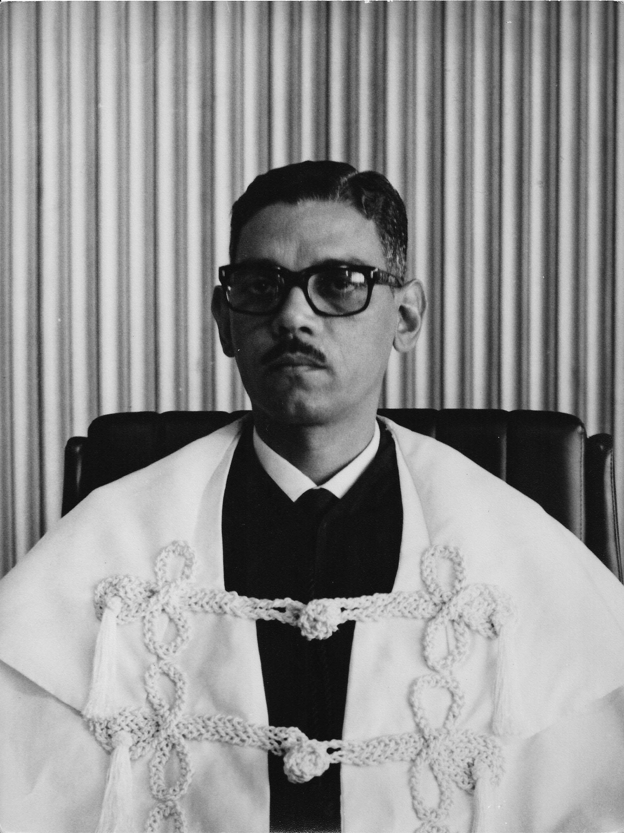 | dc.description.abstractx | Fotografia do Professor Adierson Erasmo de Azevedo, nascido na Cidade do Recife, Pernambuco, em 02 de junho de 1926. Engenheiro Agrônomo pela Escola Superior de Agricultura de Pernambuco (ESAP), formado na turma de 1948. Mestre em Estatística pelo Centro Interamericano do Chile, Doutor em Economia Rural e Livre Docente pela UFRPE, PhD em Agricultural Economics pela University of Tenesse, USA, PhD em Philosophy pela Erich Fromm World University, Miami, Flórida, USA. Reitor da UFRPE no período de dezembro de 1969 a agosto de 1973. Retrata o Professor Adierson Erasmo de Azevedo aos 33 anos, após tomar posse oficial como Reitor, sentado no Gabinete da Reitoria em 13 de novembro de 1963, posando para a foto oficial, trajando a samarra branca, veste talar ou traje oficial complementar das vestes Doutorais próprias da vestimenta do Cerimonial Universitário, usado pelo reitor nas solenidades oficiais. FONTES DE PESQUISA: Entrevista concedida às bibliotecárias Conceição Martins e Vania Ferreira para atender aos objetivos do Repositório Institucional, projeto “(Re) Memórias da UFRPE”, para a contextualização das imagens do acervo fotográfico do reitorado do Prof. Dr. Adierson Erasmo de Azevedo, no período de dezembro de 1969 a agosto de 1973, localizado no Núcleo do Conhecimento Professor João Baptista Oliveira dos Santos, da Biblioteca Central da UFRPE. Entrevista realizada no dia 13 de abril de 2016, no Espaço Santander da Biblioteca Central da UFRPE. Duração de 2h40min com transcrição e pesquisa complementar da bibliotecária Conceição Martins; Plaquete Mérito Agronômico 2004. Recife: APCA, 2004. 98 p.; AZEVEDO, Adierson Erasmo de. A “caminhada seguindo o sol” da Universidade Federal Rural de Pernambuco. Recife: EDUFERPE, 2007. 147 p. GOMES, Simone. Cerimonial da UFRPE. Depoimento oral concedido à bibliotecária Conceição Martins em 20 de abril de 2016. | |